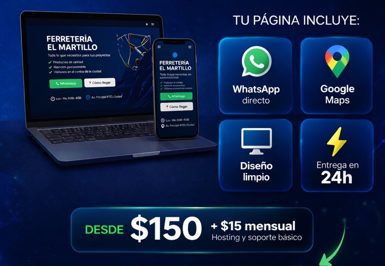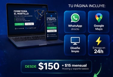 Creamos tu página web profesional, simple y lista para recibir clientes.