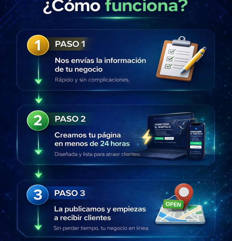 En SolucionaYa creamos páginas web simples, claras y funcionales para que tu negocio tenga presencia profesional desde ya.